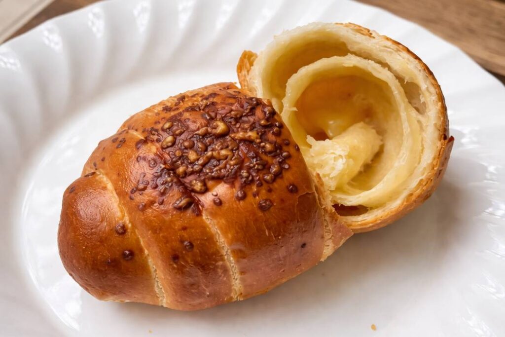 Secara teknis, daya tarik salt bread terletak pada kontras teksturnya. Bagian dalamnya lembut dan airy, sedangkan bagian bawahnya renyah karena mentega meleleh lalu menggoreng adonan saat dipanggang. Sementara itu, taburan garam laut memberikan sentuhan gurih yang memperkuat aroma mentega. Hasilnya adalah sensasi rasa yang kompleks meski bahan dasarnya sederhana. Menurut pengamatan saya sebagai pecinta roti artisan, kombinasi ini menciptakan pengalaman makan yang sulit dilupakan. Bahkan tanpa isian tambahan, salt bread tetap terasa kaya dan memuaskan.
